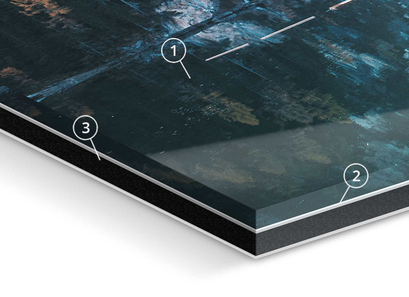 Acrylic glass pictures with a solid aluminium Dibond backing are very sturdy. The timeless design of photos on glossy acrylic is suitable for presentations of any type and meets the highest professional requirements.